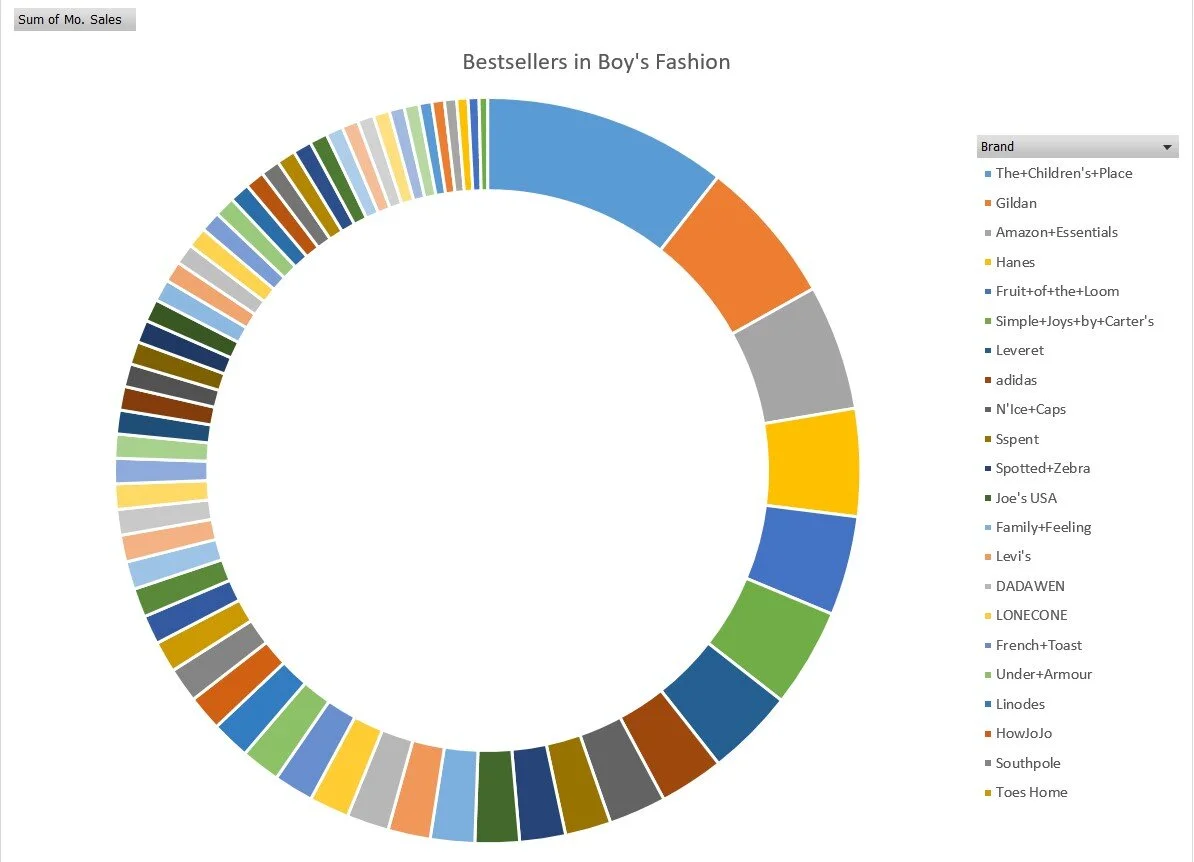 Boys Fashion Results Using Filter for “Top Brands” as Captured by Helium 10’s Xray Software